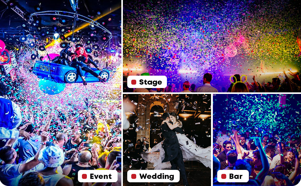 1pcs led confetti machine 1pcs Power Line 1pcs DMX cable 1pcs manual book If yo need the confetti paper ,contact us before you order !