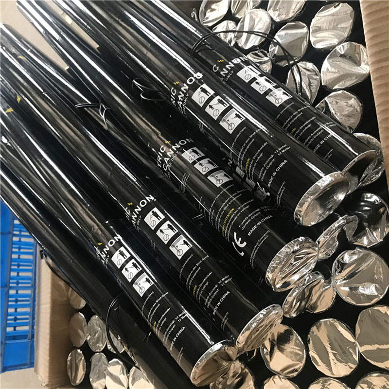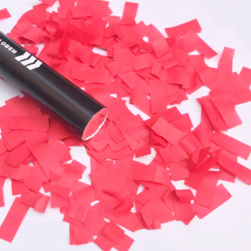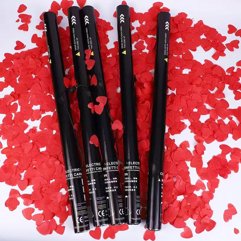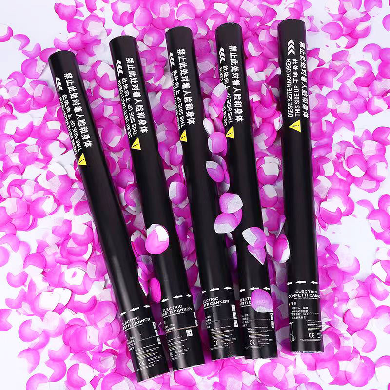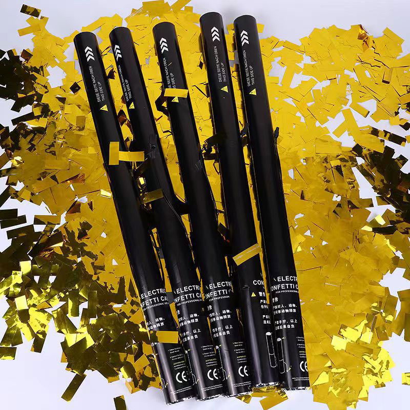 ● The confetti cannon is a single use cannon, prefilled with confetti. Need to be used with Confetti machine. ● 5x 80cm Confetti cannon. ● Consumption: Confetti. ● E-Cartridge is recommended for most indoor or outdoor jobs with ceiling clearance of 15'. Confetti will give the best coverage while streamers give more distance. For low ceiling shots, confetti is best. ● Cost effective, safe and easy to use. Comes ready to shoot right out of the box. (machine required) Nitrogen filled so no danger of fire. Streamer & Turbofetti contents all flameproof.