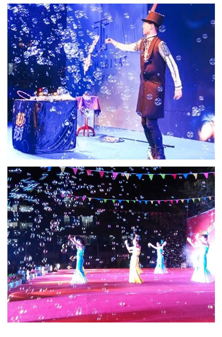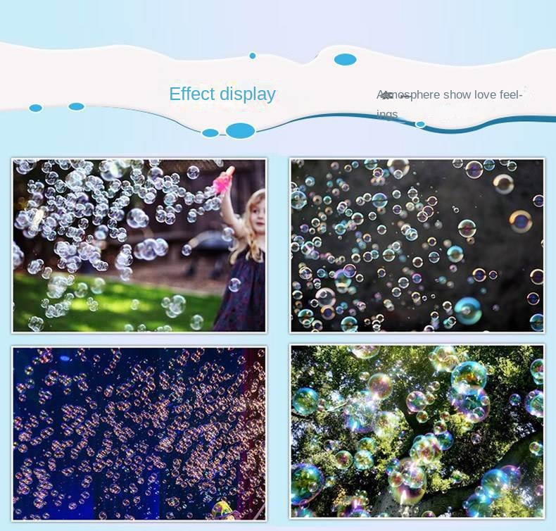 ●Bubble Juice: This bubble fluid is designed to create iridescent bubbles that shine brightly in the light for a beautiful burst of color that amps up the fun