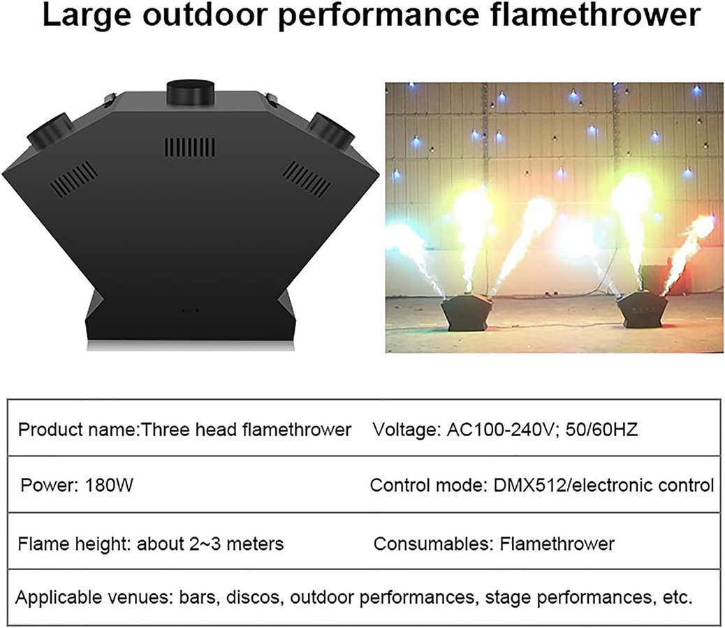 Name: Three-headed Flame thrower Voltage: 110/220V Power: 300 W.