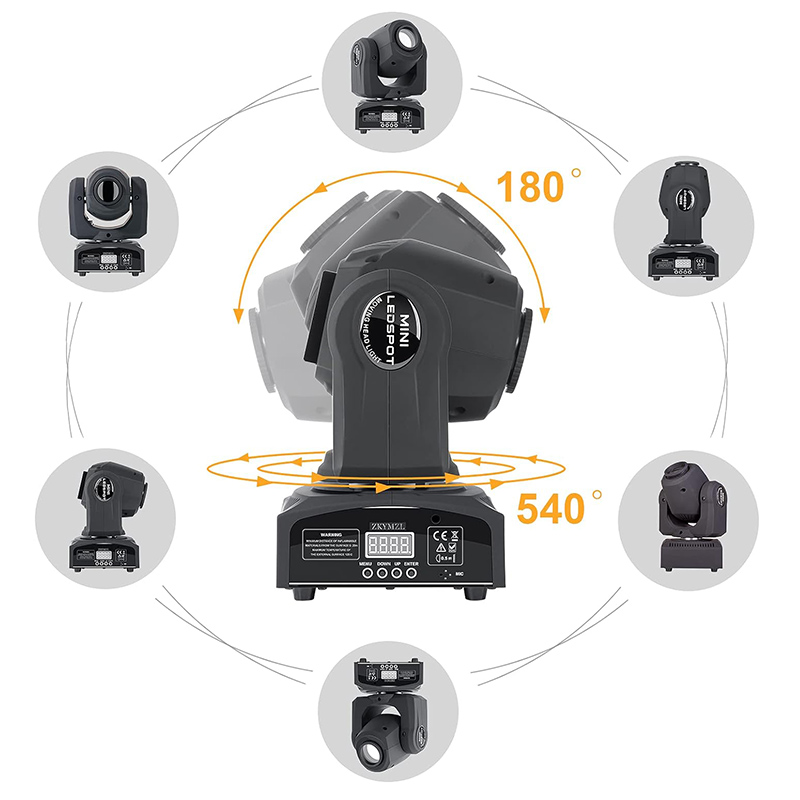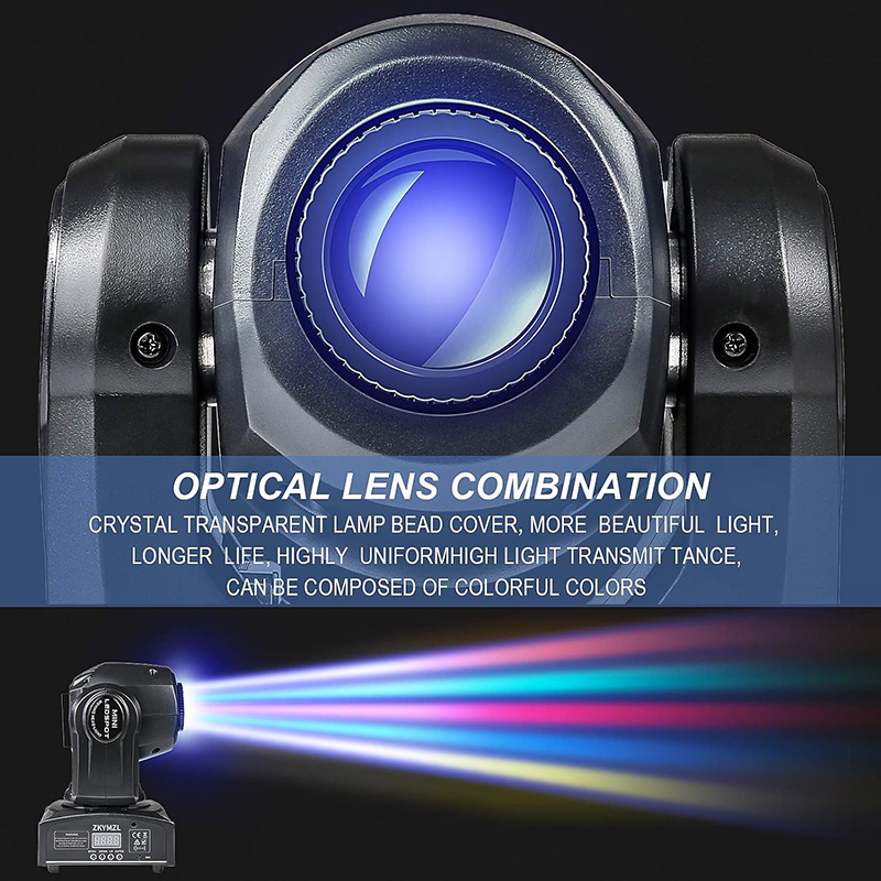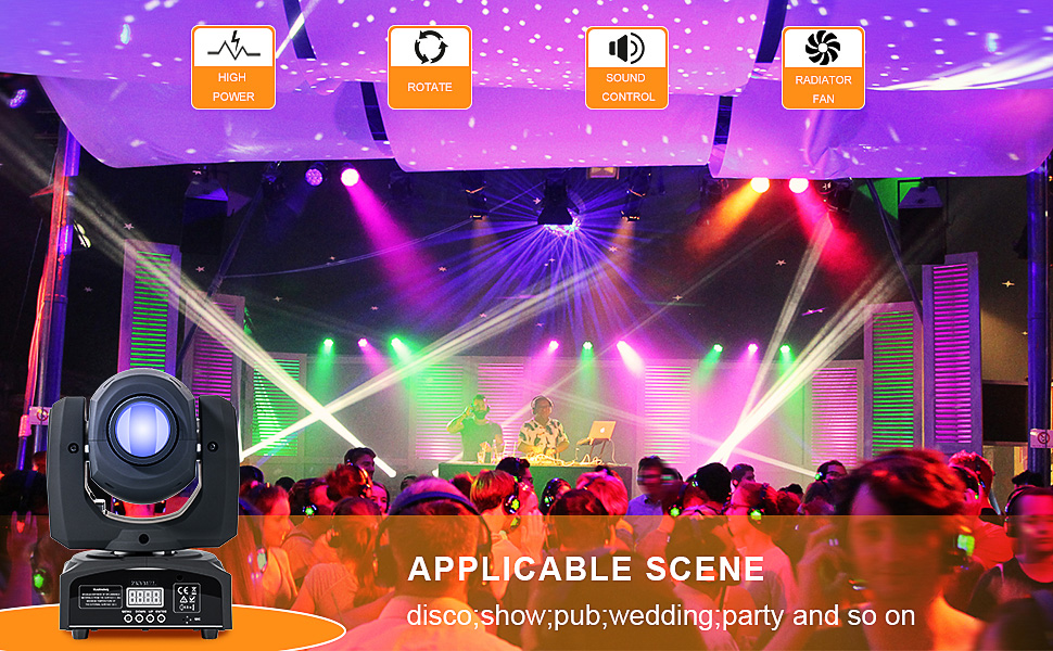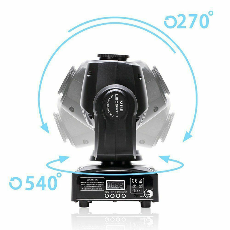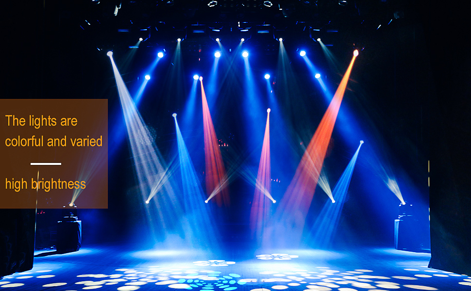 ●【FUNCTION】Party lights dj disco stage lights have 8 patterns, 8 colors,. Just add a touch of Haze / smoke and the light is seriously impressive. It has high strength chip, Flash Light Effect More Uniform. Being able to flash above the rhythm. ●【QUICK SWEEPER EFFECT】Disco lights motors are super quiet. Using extremely fast 540° Pan and 270° Tilt design allows the moving heads to move to different to angle with high speed. The light sound active sensitivity is adjustable so it can work well sitting on a speaker at low volume. ●【DMX 512】Hooked it up to your DJ lighting system and programmed with the 9/11 channel DMX function and it has react well to the settings and fader commands. Easy to use master/slave and DMX512. After the master/slave signal line is plugged in, it will automatically link to identify the host; after the console signal line is plugged in, the light will be automatically turned off without setting D001. ●【EASY TO INSTALL】Party lights dj disco lights can be hang on the shelf or with the specific intention of placing them in a ceiling soft, perfect uplights for home party, Disco halls, KTV, bar, banquet, school show, wedding ceremony, etc. Used alone or combined to create a new and stylish light with a variety of lights easily to create a beautiful stage effect.
