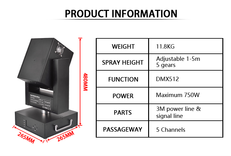 Compound titanium powder used in special effect spark machine supplies must be purchased separately. In order to avoid clogging the machine, please wipe away any leftover material in the special effect machine after each usage.1 minute of empty work.