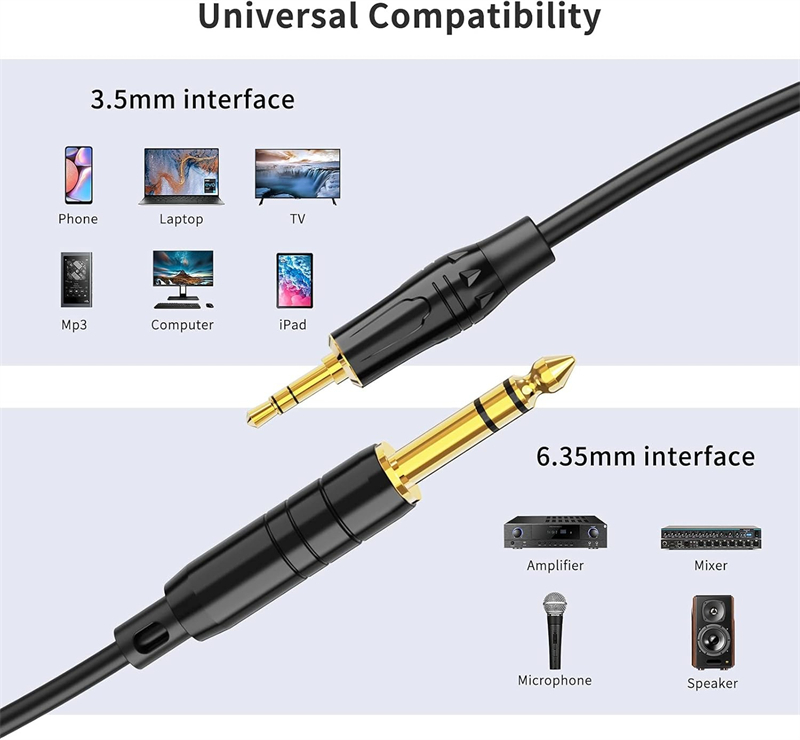 3.5mm 1/8" Male Stereo to 6.35mm 1/4" Male TRS Stereo Audio Cable connects Smartphone, iPod, MP3, Speaker, Microphone, Amplifier and so on.