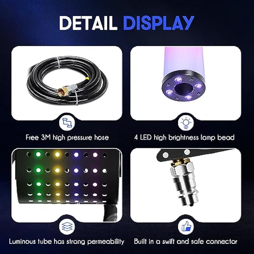 【Handheld CO2 Cannon Confetti Machine】The confetti cannon machine's varied color light integrates CO2 gas making magic effects. Power supply: AC110V/60Hz; Power : 20W; Control mode: By Handle Manual control; Co2 Shoot distance:8-10M; Confetti Spray distance: 6-8 meters; Battery: 8 pcs AA; Battery time:8 hours; Confetti tank capacity: 2~3Kg Confetti; Overall length: 720mm/28.35in; Diameter: 320mm/12.60in; Weight: 7Kg.