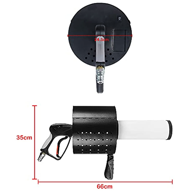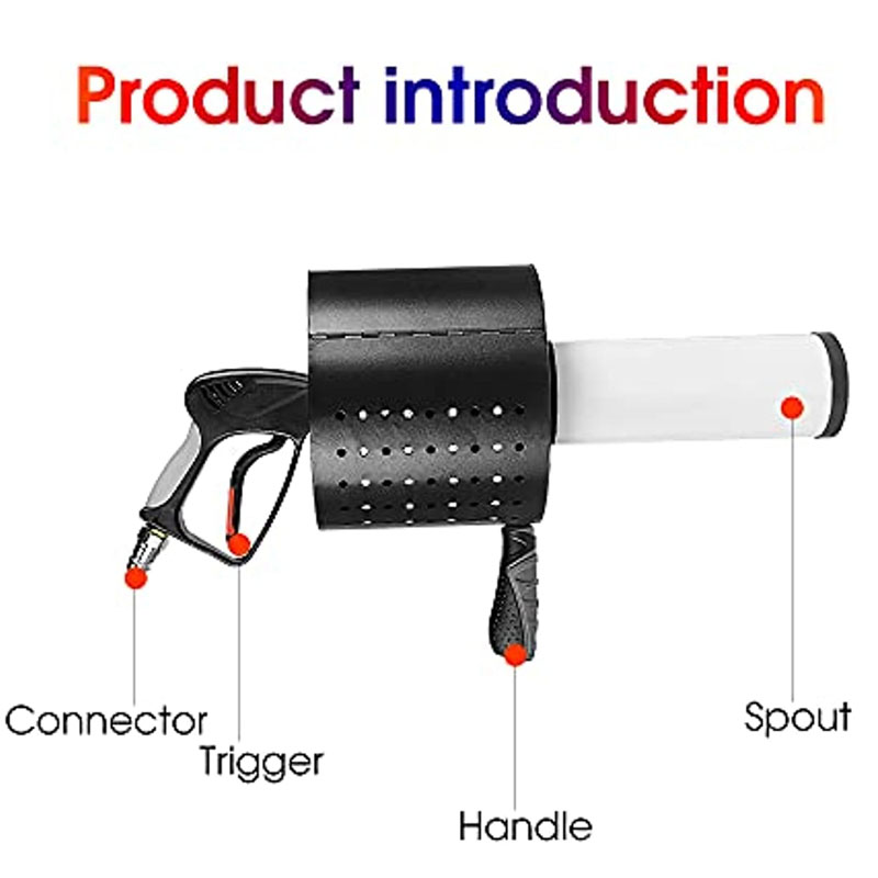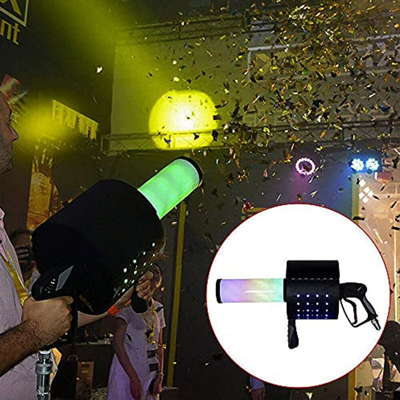 Handheld CO2 Cannon Confetti Machine】The confetti cannon machine's varied color light integrates CO2 gas making magic effects. Power supply: AC110V/60Hz; Power : 20W; Control mode: By Handle Manual control; Co2 Shoot distance:8-10M; Confetti Spray distance: 6-8 meters; Battery: 8 pcs AA; Battery time:8 hours; Confetti tank capacity: 2~3Kg Confetti; Overall length: 720mm/28.35in; Diameter: 320mm/12.60in; Weight: 7Kg. 【Superior Performance】The big confetti cannon has perfect appearance and technical design, can shoot out confetti with CO2 together. Large amount co2 gas output, led colorful co2 spray cannon, gas spray distance can be 8-10 meter. Comfortable handle design, professional anti false triggering insurance. 【7 Colors LED】7pcs color LED on head of tube, will light on once move the trigger. Tube and confetti tank: Led strip inside, 7 Colors change automatically. It is easy to operate and create various effects. They are widely using in concert,stage, club,etc. 【Wide Applications】LED CO2 confetti gun making magic effects. With manual control, the machine can spray colorful confetti to 6-7 meters, is suitable for various disco show and concerts, club, party, stage, wedding ceremony, nightclubs, etc. 【Packing List】Comes with 1pcs led co2 DJ Confetti Gun; 1pcs 10 Feet gas hose; 1pcs manual book; 1pcs resin tube; 1pcs charger. Received laughter, screams and shocked expressions when set them off, the beautiful effect created by the confetti slow-falling after launch is very suitable for photography.This is stage LED Co2 Gun + LED Confetti Cannon machine, The varied color light integrates CO2 gas making magic effects. With manual control, the machine can spray colorful confetti paper to 7-10meters. it is easy to operate but create various effects. They are widely using in concert,stage, club,etcPower : 20W Control mode: By Handle Manual control Co2 Shoot distance:8-10M Confetti Spray distance: 6-7 meters 7pcs color LED on head of tube, will light on once move the trigger Tube and confetti tank: Led strip inside, 7 Colors change automaticallyBattery: 8 pcs AA (Not included due to can’t ship by express) Battery time:8 hours Fuel: CO2 Gas and confetti in confetti tank Confetti tank capacity: 2~3 kg Confetti Packing size:77*33*43cm Net Weight: 6 kg Gross weight: 8.6 kg