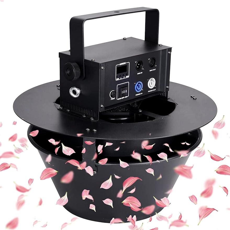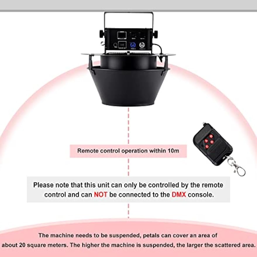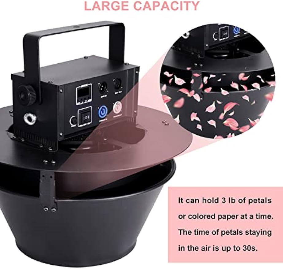 Stage Swirl Confetti Machine Floating Paper Machine Hanging Automatic Color Paper Machine DMX 512 Remote Control Confetti Blower for Petals Falling Wedding, Concert 【Create Love & Romance】The confetti launcher cannon machine is the ultimate tool for creating love and romantic effects. Designed to be hung from a truss or ceiling, releasing masses of charming confetti from the air. 【Wide Coverage】The confetti machine has a coverage area of approximately 50 square meters, ensuring that the confetti petals reach every corner of the venue. Create stunning visual effects beyond imagination