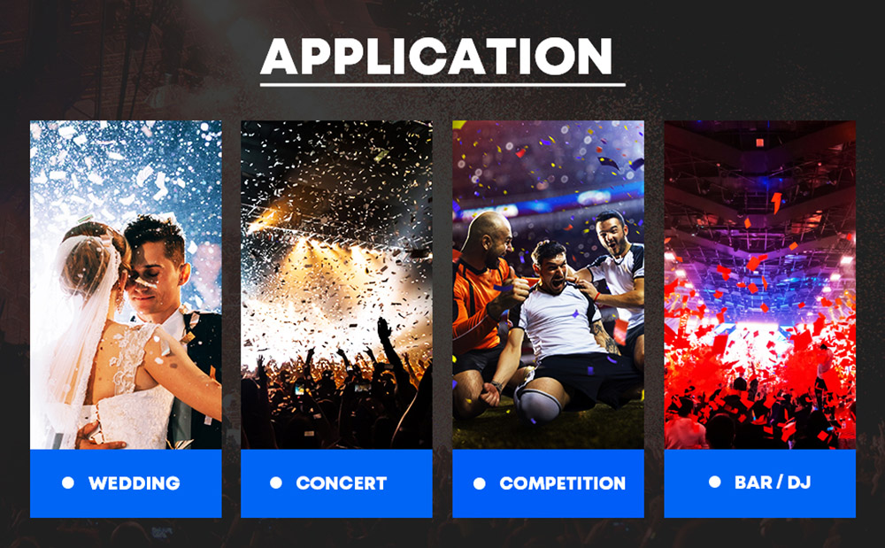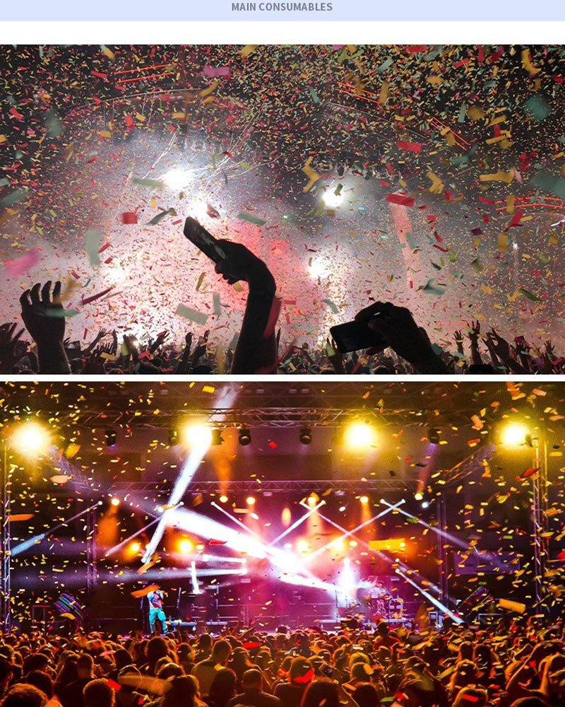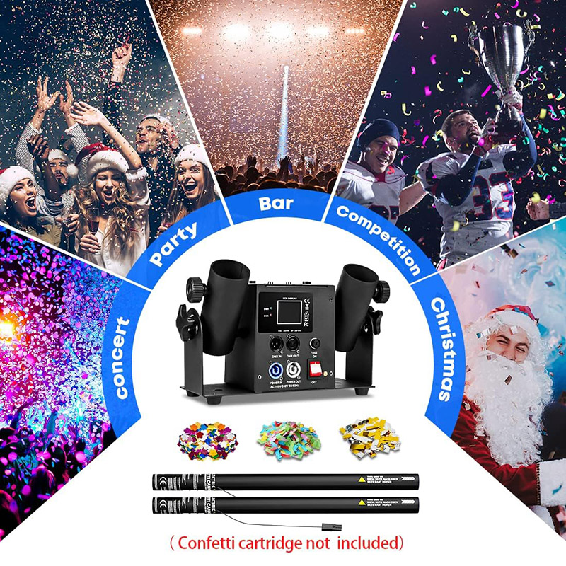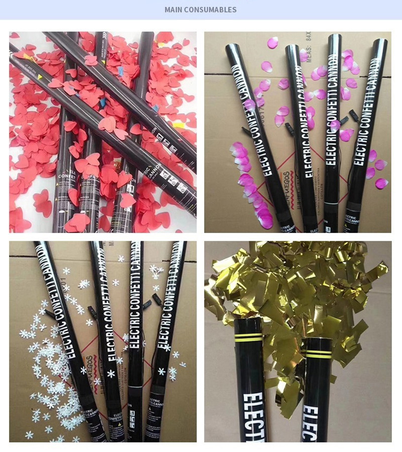 ●The confetti cartridge is confetti consumable with a high-pressure gas cylinder. You only need to use a confetti cahertridge when you use the confetti launcher. You don't need to connect CO2 tank like a confetti blaster to more operations and takes up more event space or uses a fan-confetti blower with a larger volume, which will save more space and reduce noise for your event. ●The motherboard of the device has been improved to follow up, so that the next second will be spray when the firing command is sent, avoiding delayed injection and missing the best launch time. ●You can choose the length of the 40cm/60cm/80cm salute and the type of confetti cartridge according to the specific activities.The package doesn't include electric confetti cartridge, The electric cartridge buying link is in this product A+ detail ,you can find it ,The effect of the release is different. The longer the confetti cartridge will be sprayed higher and more confetti paper.