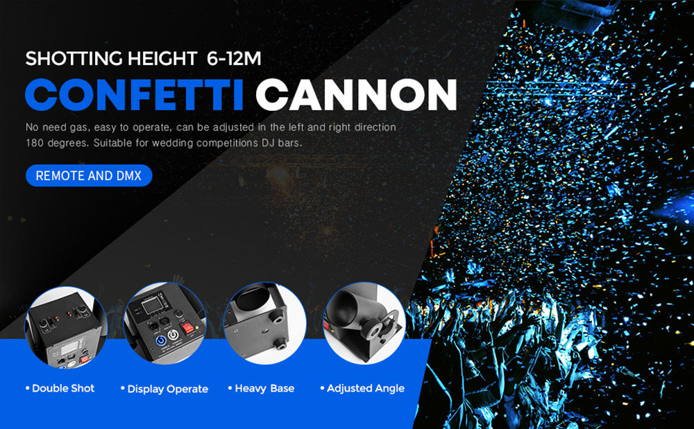 ●The confetti cartridge is confetti consumable with a high-pressure gas cylinder. You only need to use a confetti cahertridge when you use the confetti launcher. You don't need to connect CO2 tank like a confetti blaster to more operations and takes up more event space or uses a fan-confetti blower with a larger volume, which will save more space and reduce noise for your event. ●The motherboard of the device has been improved to follow up, so that the next second will be spray when the firing command is sent, avoiding delayed injection and missing the best launch time. ●You can choose the length of the 40cm/60cm/80cm salute and the type of confetti cartridge according to the specific activities.The package doesn't include electric confetti cartridge, The electric cartridge buying link is in this product A+ detail ,you can find it ,The effect of the release is different. The longer the confetti cartridge will be sprayed higher and more confetti paper.