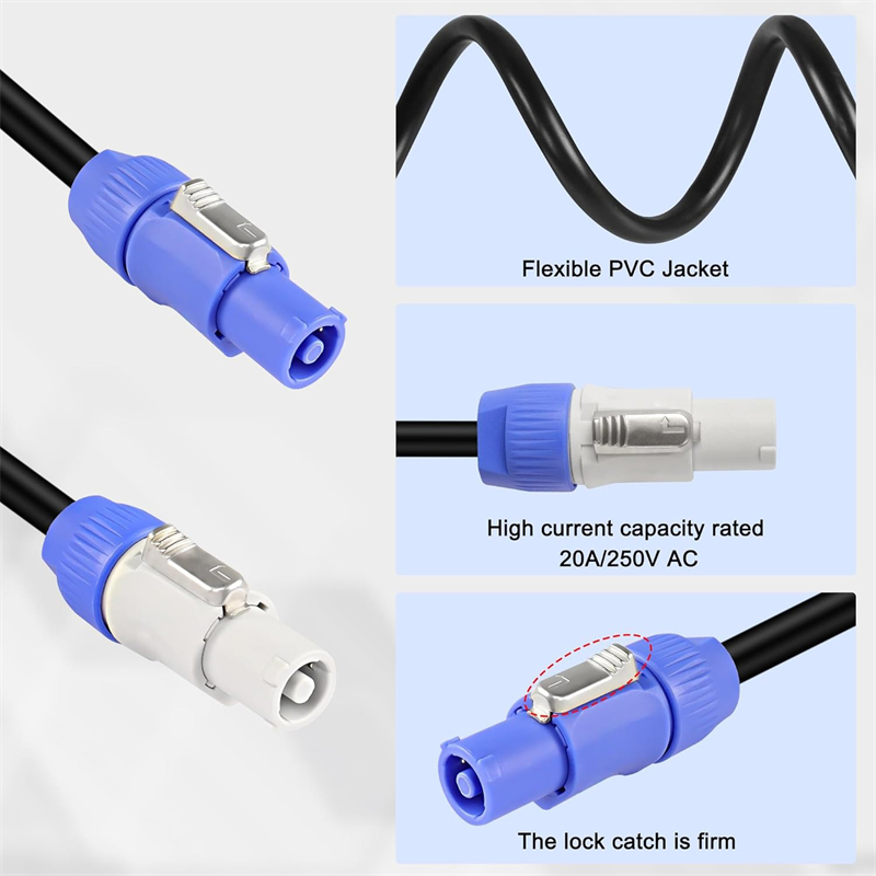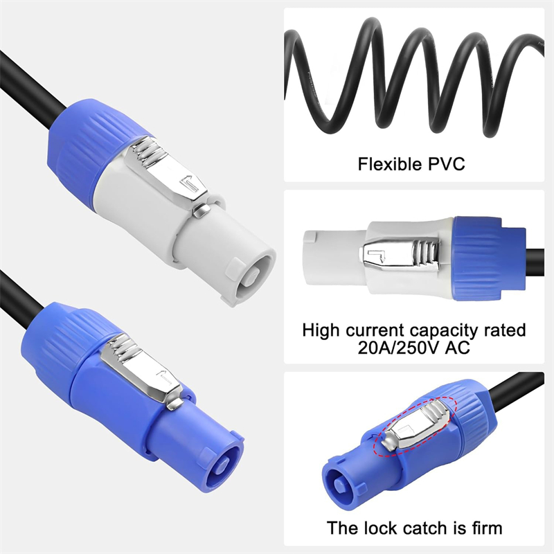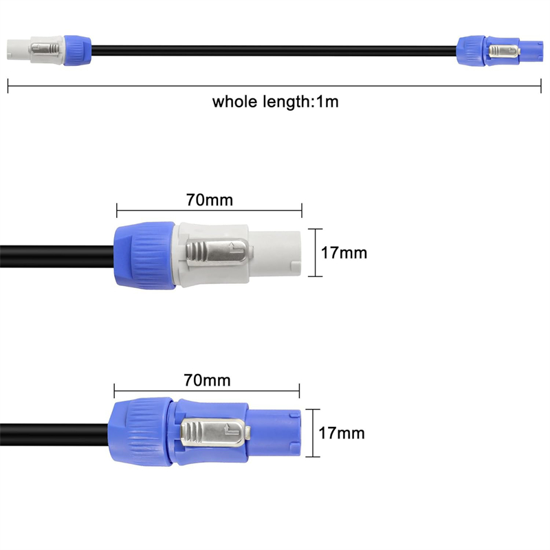 This powercon input cable is a connector with disconnecting capacity (CBC), i.e. it can be connected or disconnected under load or with power, replacing any electrical coupler that requires a very robust solution combined with a locking device to ensure a safe power connection. (Note:both connectors are AC powercon input)