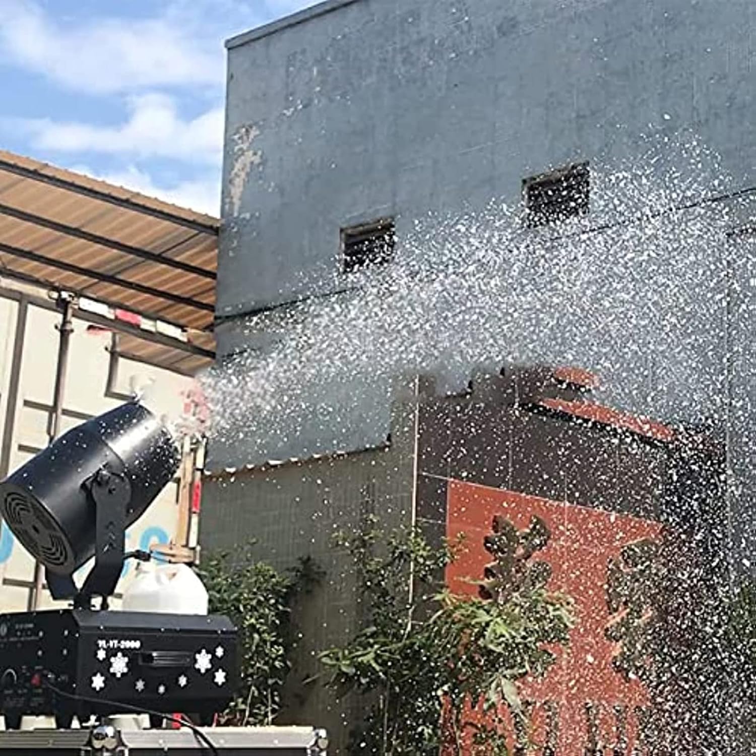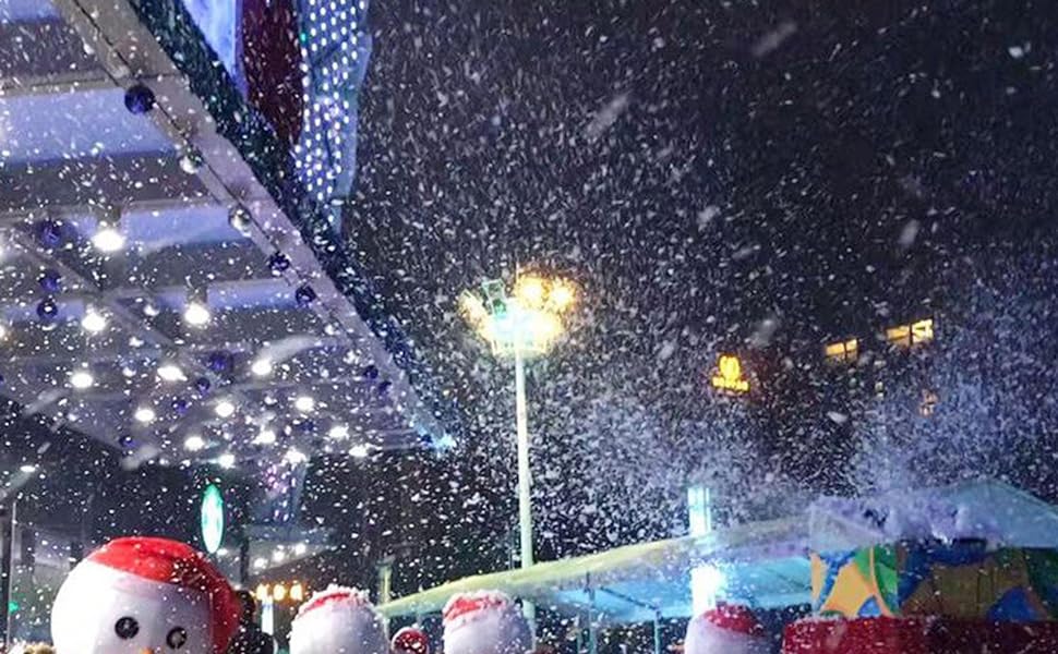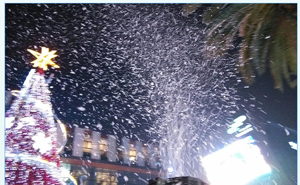 ●50㎡ Covering area: Our fake snow machine with 180° automatic shaking, the coverage area can reach 50㎡. no need to preheat, snow will appear within 1 minute after the snow oil is installed. ●3~5M Spraying distance: The snowmaker with 5-liter large-capacity mailbox, a longer time for spraying snowflakes, it's around 30-40 minutes.