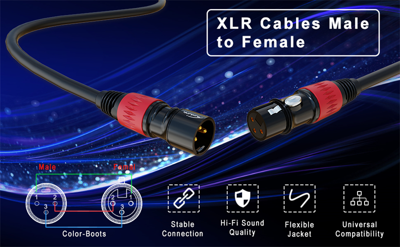 Multi Color XLR Cables - Each cable has a different color connector, help you to track or match the right ends easily when use
