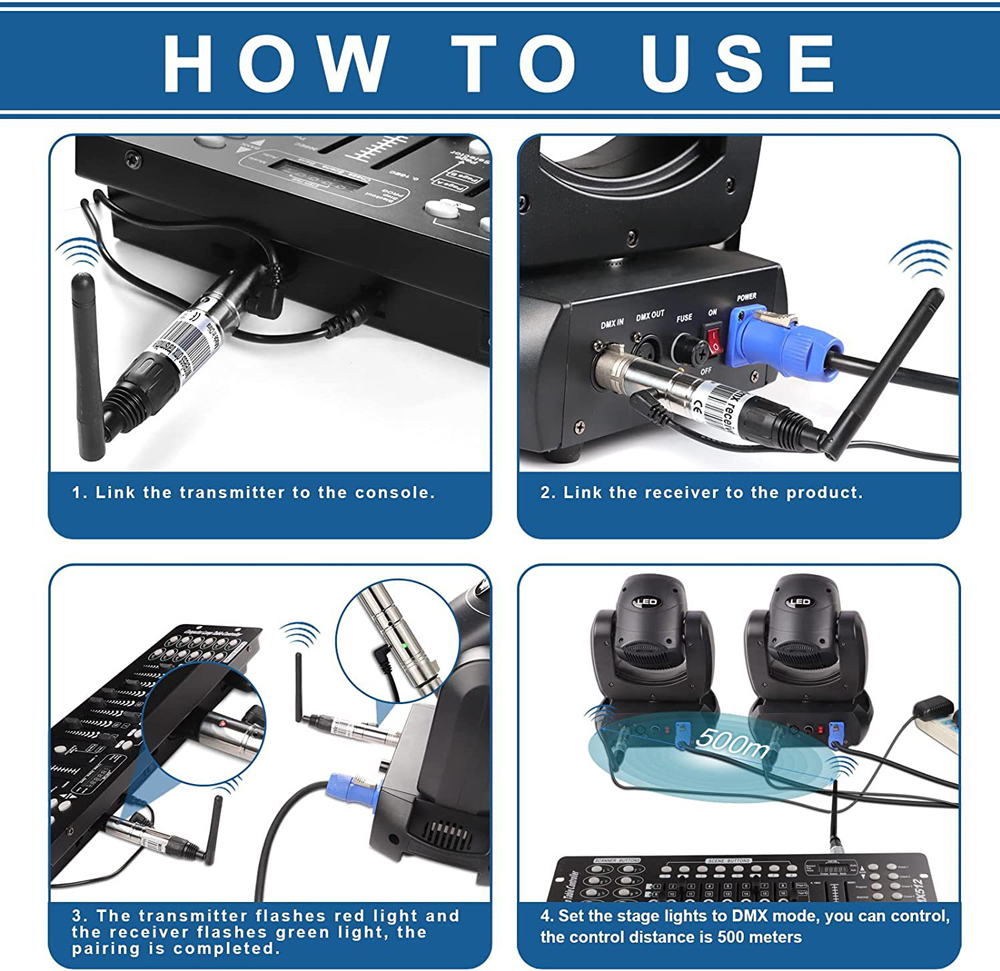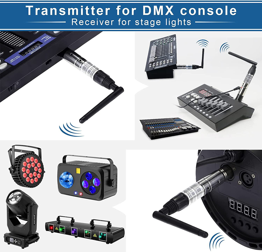 1 * DMX Transmitter 1 * DMX Receiver 2 * Adapters 1 * User Manual Packing size: 20*15*10cm 0.5kg 28 US dollars